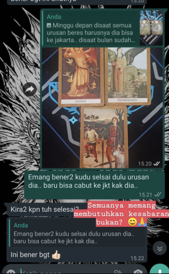 Melalui simbol, struktur waktu, dan pembacaan energi, saya membantu klien: