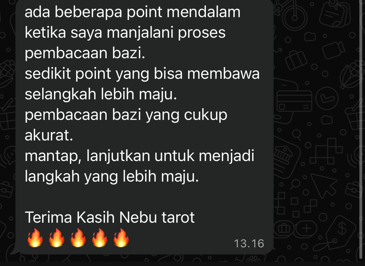 Mochamad Firdaus, dikenal sebagai Nebu Tarot, adalah seorang metaphysical strategist dan professional divination consultant yang berbasis di Jakarta.